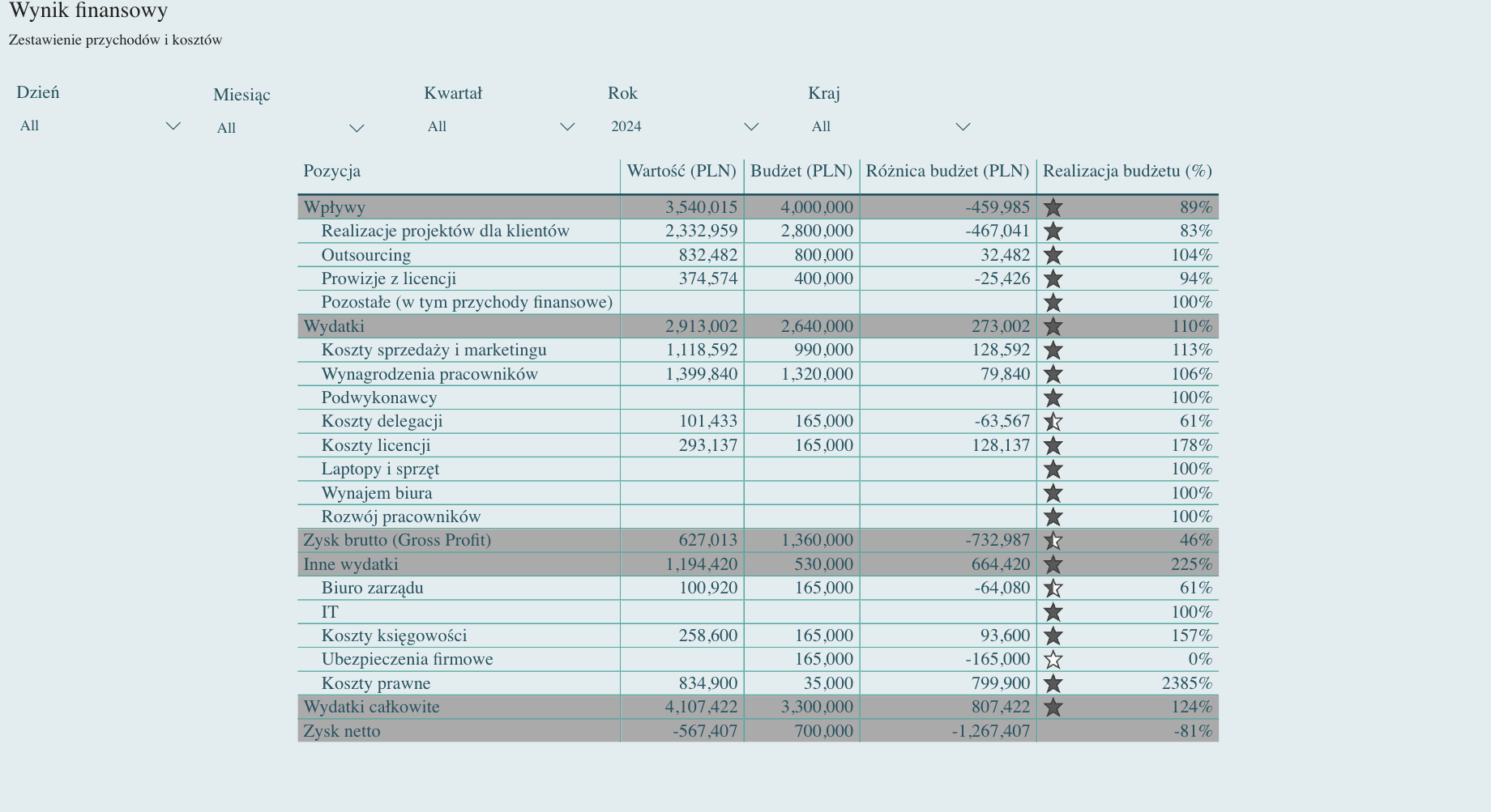 See below the demo solution of the report - P&L, Sales, Sales plans realisation, and Expenses.